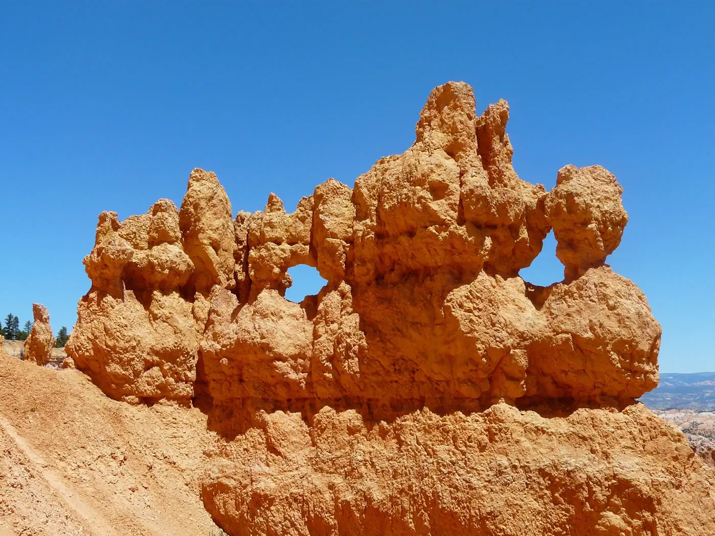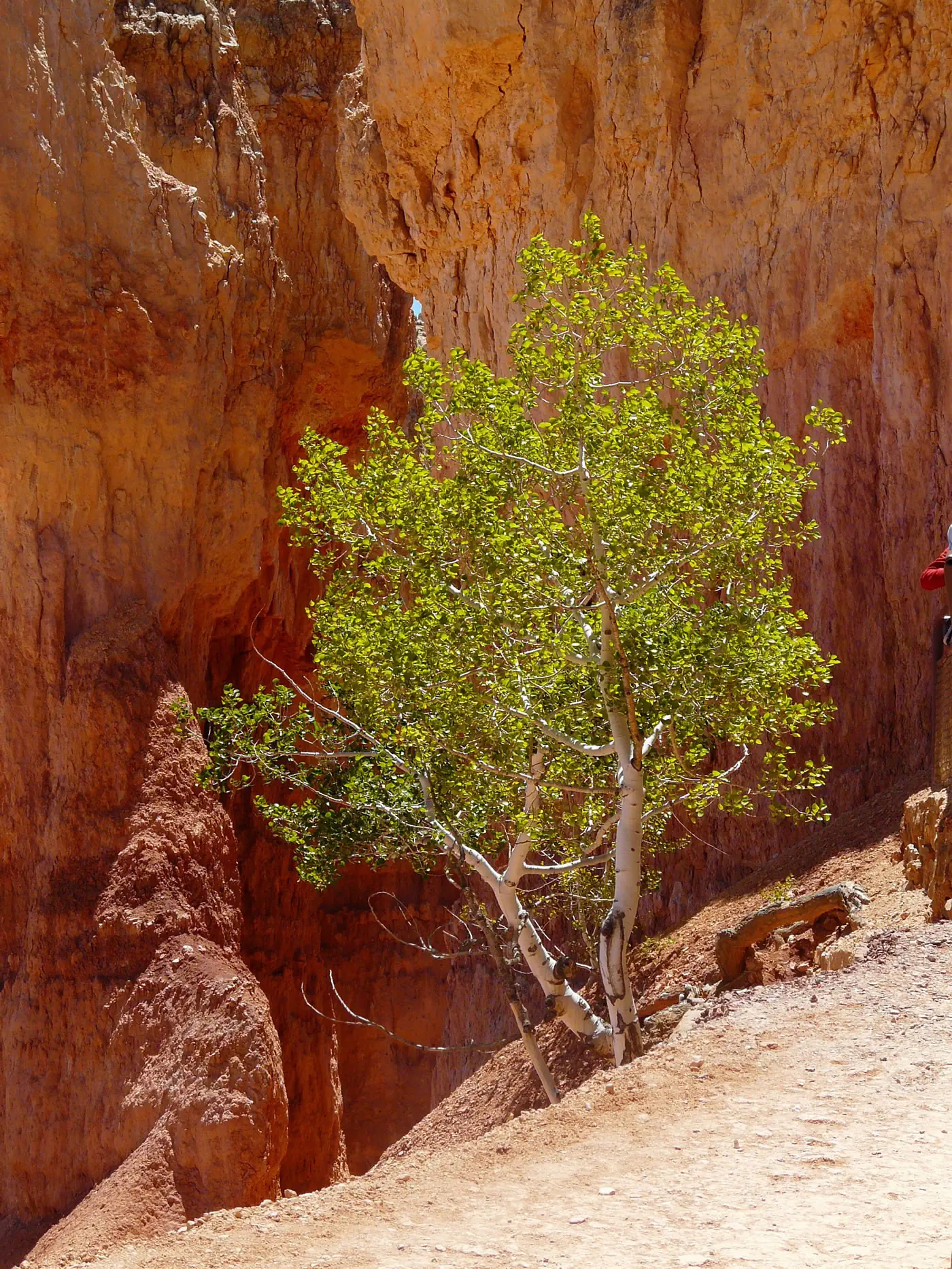 Die ersten Sonnenstrahlen tauchten die Landschaft in ein warmes, goldenes Licht, das die Farben der Felsen zum Leuchten brachte. Meine Schritte hallten auf den Wegen wider, als ich tiefer in den Canyon vordrang. Über mir ragten die Hoodoos auf, als würden sie den Himmel selbst berühren. Es fühlte sich an, als würde ich durch eine vergessene Welt wandern, in der die Zeit stillzustehen schien.